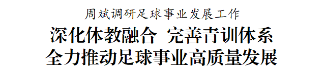 9月29日下午,市委书记周斌专题调研深化体教融合推动足球发展工作。他强调,要深入学习贯彻习近平总书记关于体育的重要论述,持续深化体教融合,推广普及校园足球,完善青训体系,丰富优质赛事活动,强化基础设施建设,夯实人才根基,推动我市足球事业高质量发展。