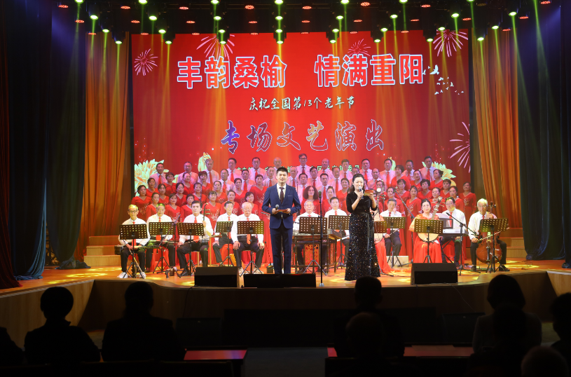 下午两点半,“丰韵桑榆 情满重阳”专场文艺演出正式拉开帷幕。镇党委书记陈纪忠在致辞中,向全镇老年同志致以节日的问候和祝福,他表示:“新丰的发展成就离不开老同志们的奠基与奉献,镇党委政府将持续加强养老服务工作,让老人们能够共享发展成果。”