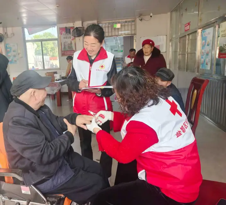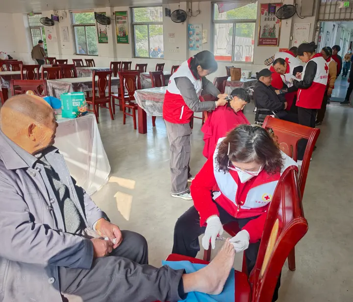 10月28日下午,阳光透过玻璃窗洒进大纵湖镇老年公寓的活动室,一抹“志愿红”在人群中穿梭——盐都区红十字会养老照护志愿服务队的骨干志愿者,带着工具与热情如约而至,为这里的老人们送上定制化暖心服务。