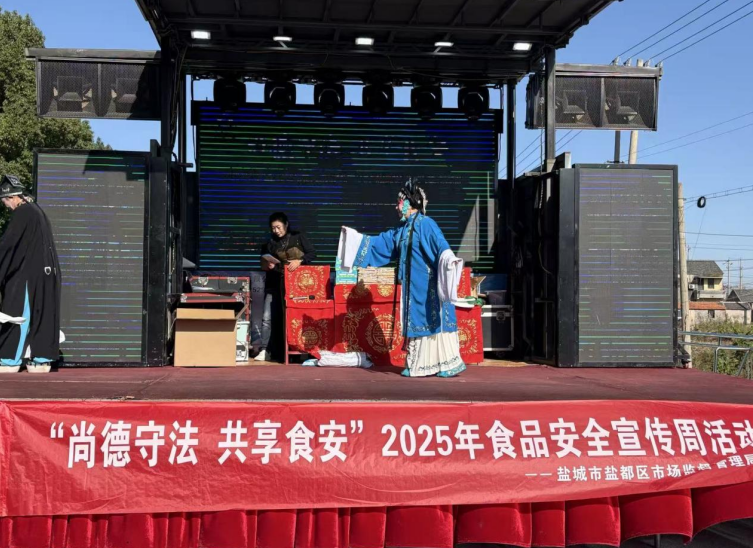 为进一步普及食品安全知识,增强辖区群众食品安全意识和自我保护能力,营造人人关心、人人参与食品安全的良好社会氛围,11月10日,盐城大纵湖旅游度假区联合盐都区市场监督管理局在度假区北宋社区健身广场开展了“尚得守法、共享食安”2025年食品安全宣传周文艺义演系列活动。