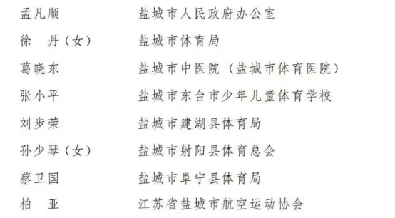 来源:国家体育总局网站、盐城发布综合