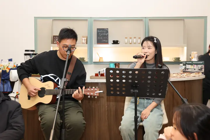 当晚的活动,在民谣吉他演唱中开启。一首《张三的歌》,让时光回到20世纪80年代。在轻松愉悦的氛围中,姚梦以一段轻松幽默的“脱口秀”分享创作心路。他坦言,写作《生于80年代》并非仅为怀旧,更是试图通过“自助餐”“游戏厅”“校服”“随身听”等具象化的生活场景,打捞深藏于个人记忆中的时代痕迹,为一代人的成长完成一次散文式的“考古”。