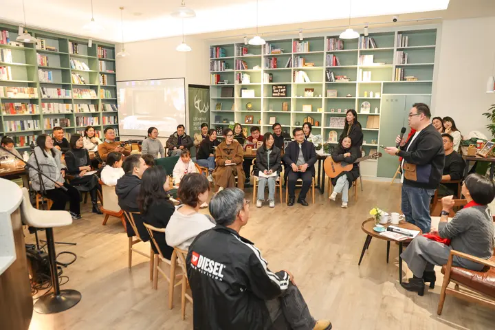 12月5日晚,盐城市图书馆“阅·享空间”内流淌着怀旧的旋律,散文集《生于80年代》新书分享会在此举行。作者姚梦与本地作家、文学爱好者及媒体代表齐聚一堂,在经典老歌与时代物件的回溯中,共同梳理“80后”一代人的集体记忆与个体书写。