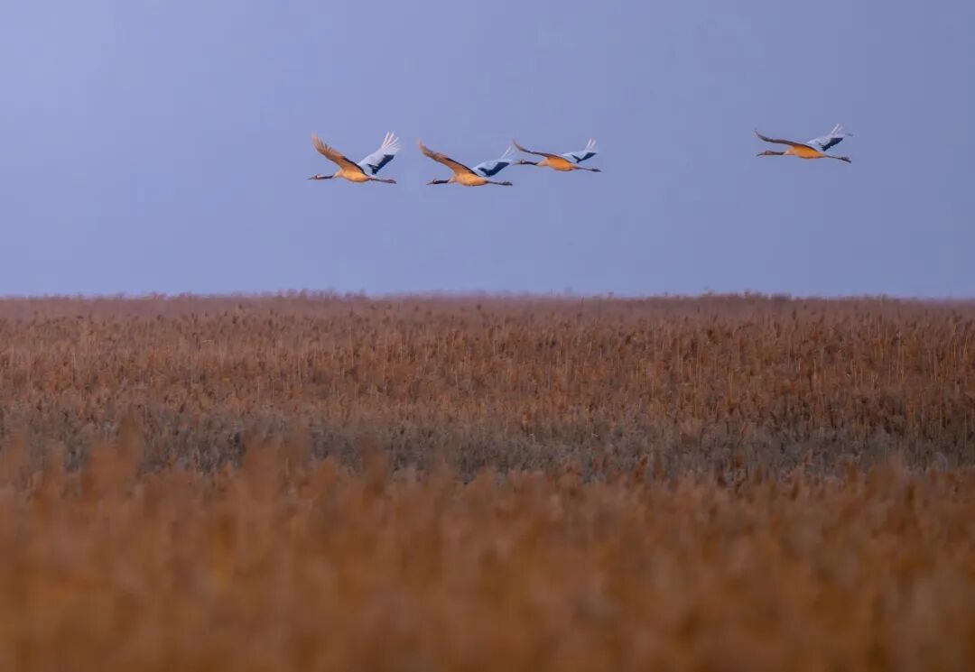 1月3日,江苏盐城国家级珍禽自然保护区内,越冬的丹顶鹤振翅翱翔,与芦苇荡、滩涂相映成趣,勾勒出一幅灵动和谐的生态图景。盐城生态资源丰富,拥有大面积的滩涂湿地,该区域作为东亚-澳大利西亚候鸟迁飞路线的关键节点,为大量候鸟提供越冬栖息地,每年有超过300万只冬候鸟来盐城越冬。