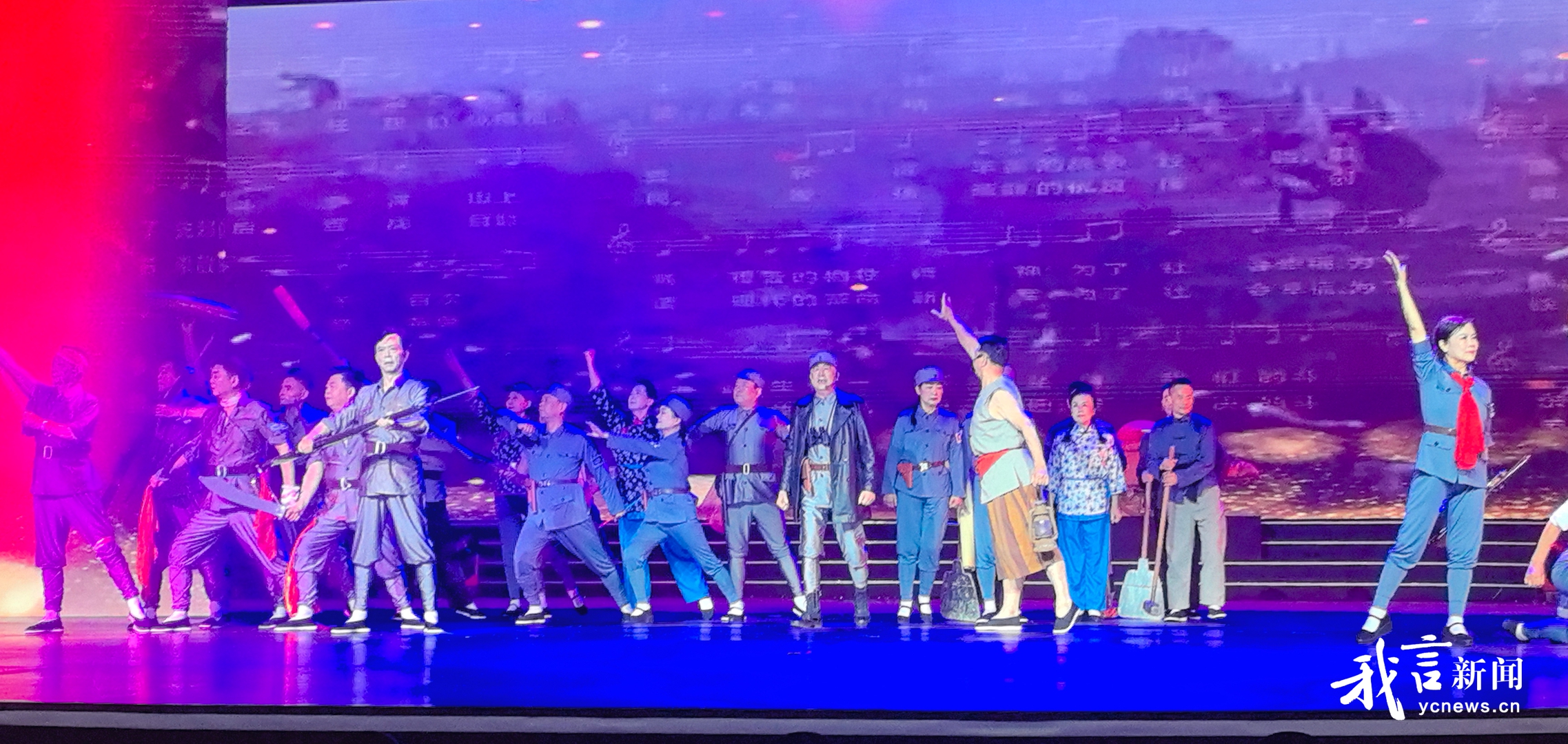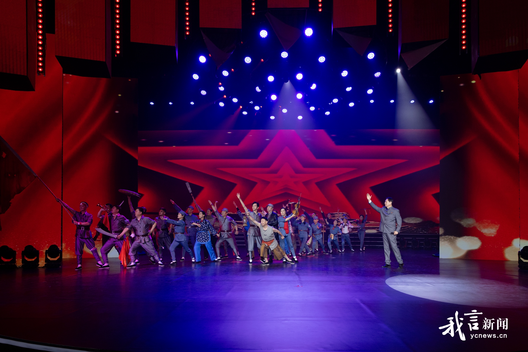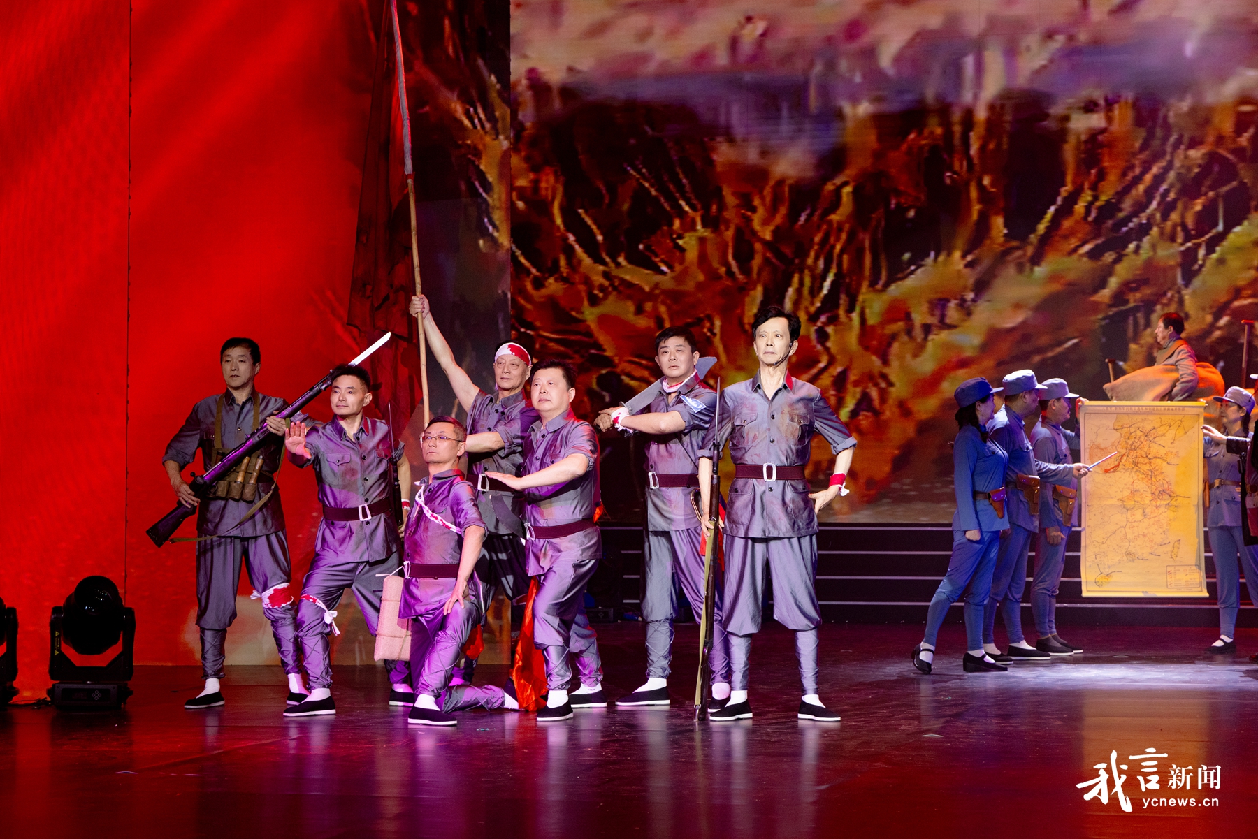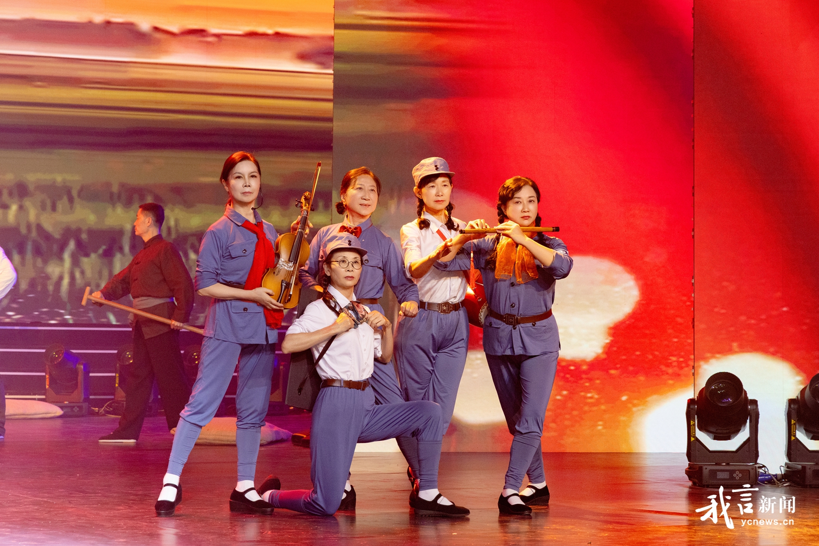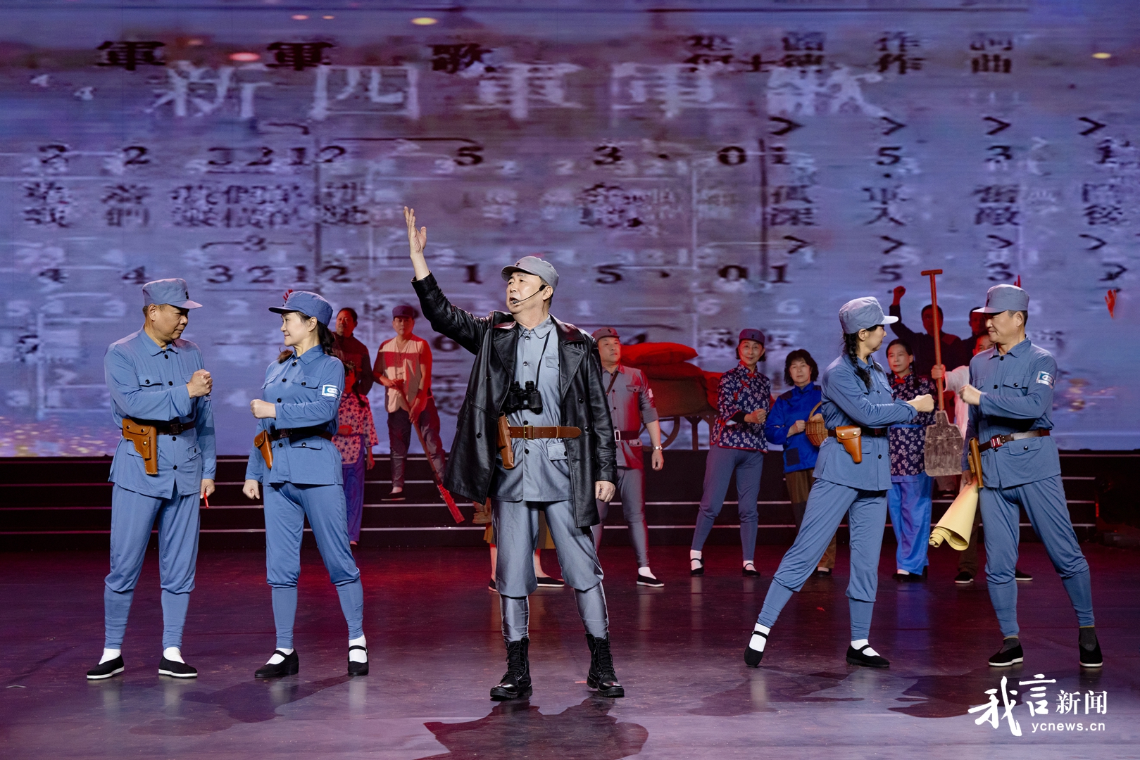 “我是一杆枪,我是汉阳造……到那时候,我要让我这把骨头铸成犁铧,在我们家园的土地上,犁出五谷丰登……”演员铿锵的朗诵,将新四军将士“捐躯赴国难”的铁血担当刻画得淋漓尽致。我是陈毅元帅当年执笔创作的《新四军军歌》的合声响起,激昂的旋律仿佛穿越历史烟云,将现场观众带入那个同仇敌忾、保家卫国的年代。