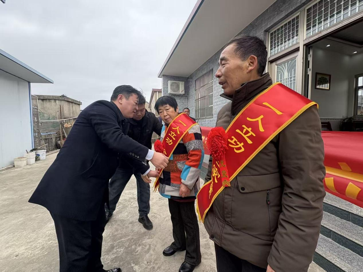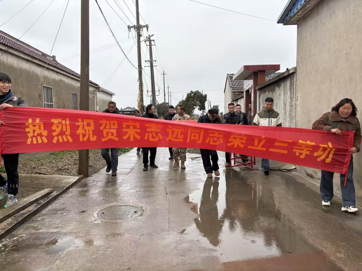 2 月 6 日上午,由盐都区退役军人事务管理局、盐城大纵湖旅游度假区及相关村(社区)组成的送喜报小组,先后前往镜湖村、平湖居委会,为立功受奖的现役军人王华、宋志远、宋健家属送上立功喜报,佩戴光荣绶带,让军人军属共享荣光时刻,营造 “一人立功、全家光荣、全社会尊崇”的浓厚氛围。