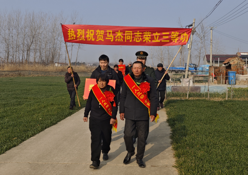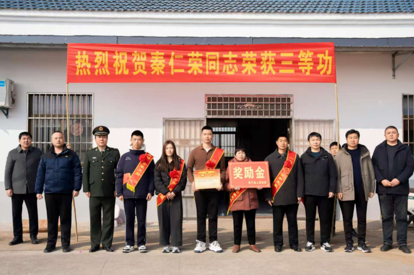 宣读立功通令、披上绶带、送上立功喜报……每到一户立功军人家中,工作组都举行热烈庄重的仪式,向他们致以热烈祝贺和新春祝福,同时与立功军人军属亲切交流,详细了解工作生活情况,表达党委政府的关心关爱。在羊寨镇大西村立功军人秦仁荣家里,工作组将承载着荣誉的三等功喜报和立功荣誉金郑重送到立功军人秦仁荣和家人手中,感谢功臣为家乡争了光,鼓励他再接再厉,为家乡争取更大荣誉。“儿子在部队立功,这是我们收到的最好新春礼物,”在芦蒲镇三马村,当工作组将立功喜报和荣誉金送到立功军人马杰父母手中,军属难掩激动,话语间满是自豪。