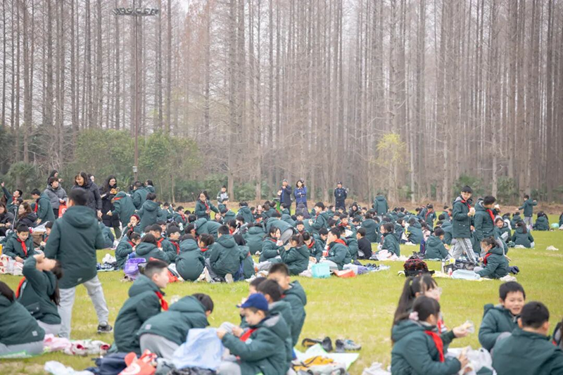 大家围坐成圈,分享着美食与趣事,欢声笑语在草坪上空飘荡。孩子们在自然中舒展身心,在同伴的陪伴中收获友谊。这场野餐不仅是春日的浪漫仪式,更让每一个人感受到集体出游的温暖,为春日研学增添了柔软的注脚。
