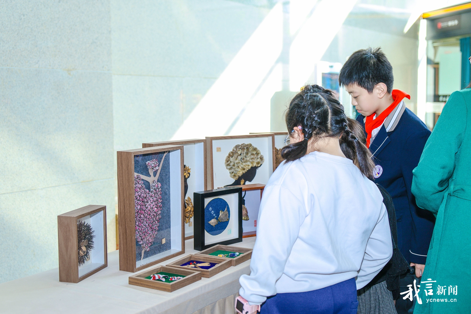 《植有爱——重组大自然的零件》的作者徐春凝带来了一场别开生面的植物科普课。她从常见的盐城本土植物讲起,用生动的图片和浅显的语言介绍它们的名称、习性与有趣知识。PPT翻到一页植物作品,她问台下,“这个是什么?有没有小朋友认识?”话音刚落,几十只小手齐刷刷举起来,“是开心果!”“是开心果做成了葡萄的样子。”孩子们争相抢答,徐春凝笑着揭晓答案,并顺势讲解这种植物的生活习性。她还带来了一批亲手制作的植物手工作品,当精致的作品亮相时,一片“哇——!”的惊叹声。“老师这个什么植物的种子?”“这个是把莲蓬做成了舞蹈家的裙子哎!”孩子们围上前,问题一个接一个。一位陪孩子参加活动的父亲感慨,“平时带孩子去公园,他都只顾着跑。今天居然主动提出要去捡果实做手工,徐老师的课太有魔力了。”